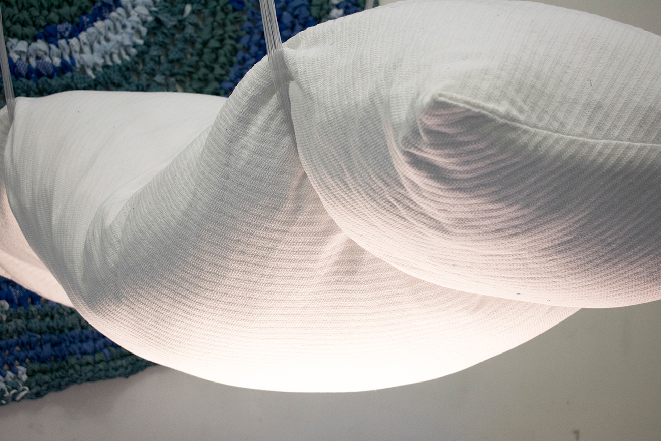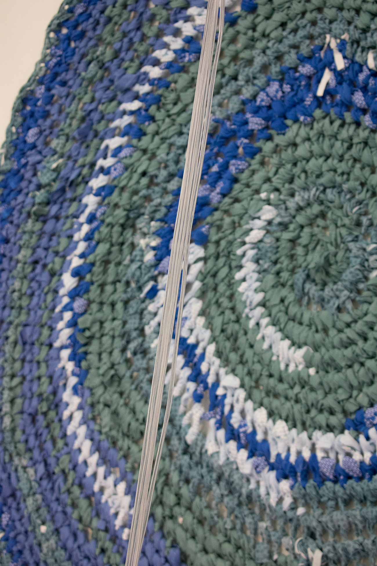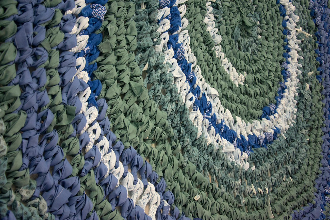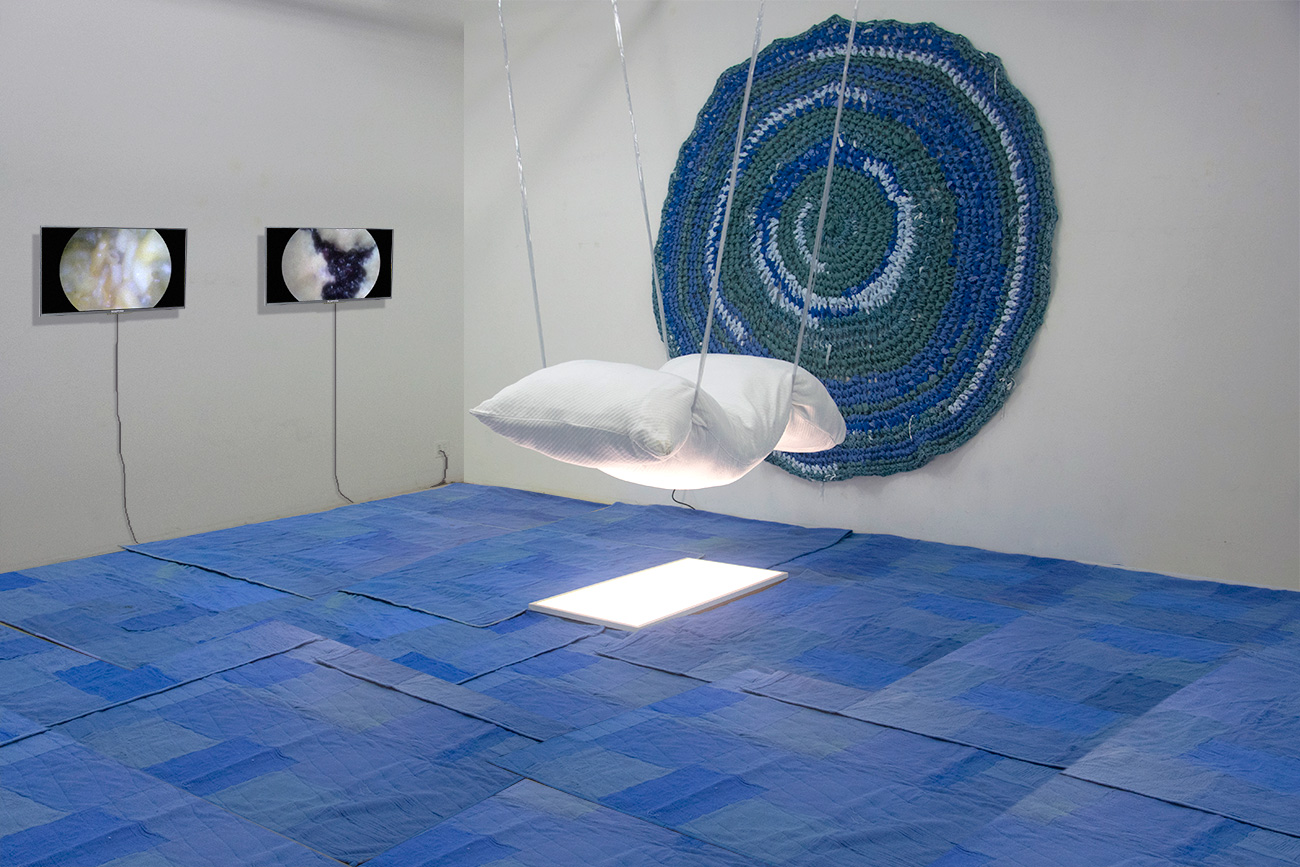 Framing the hospital room as sacred space, this work explores fiber crafts like rug-making and quilting using textiles from clinical settings. As beds and pillows are vessels for holding the body, so are quilts, rugs, towels, gowns, socks, and sheets. Viewers are invited to remove their shoes, gather close to objects, and be enveloped in the space. Removing shoes becomes an invitation to vulnerability. To do so in the midst of clinical materials is to treat them differently than we do in biomedicine. We uncover the body rather than covering it for protection; we remove barriers rather than constructing them. In the midst of COVID-19, this is unimaginable. Code Blue, then, becomes a vision of what is impossible and a way to hold the pain of clinical space in care and hope.